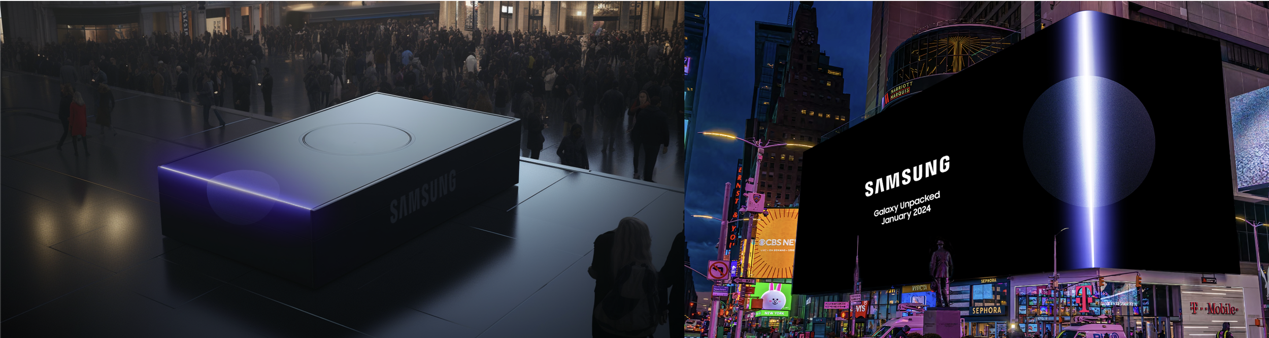 Just before Samsung Unpacked event, the campaign begins to reveal the new era through an epic unboxing moment. Monumental 3D DOOH billboards and large-scale installations appear as sealed Samsung boxes, glowing from within. As the launch approaches, the seal slowly cracks, the sticker peels away, and each box opens bit by bit—building anticipation until it finally releases a burst of A.I. light into the world, revealing the new phone. A familiar ritual, transformed into a powerful signal of a new era of intelligence.